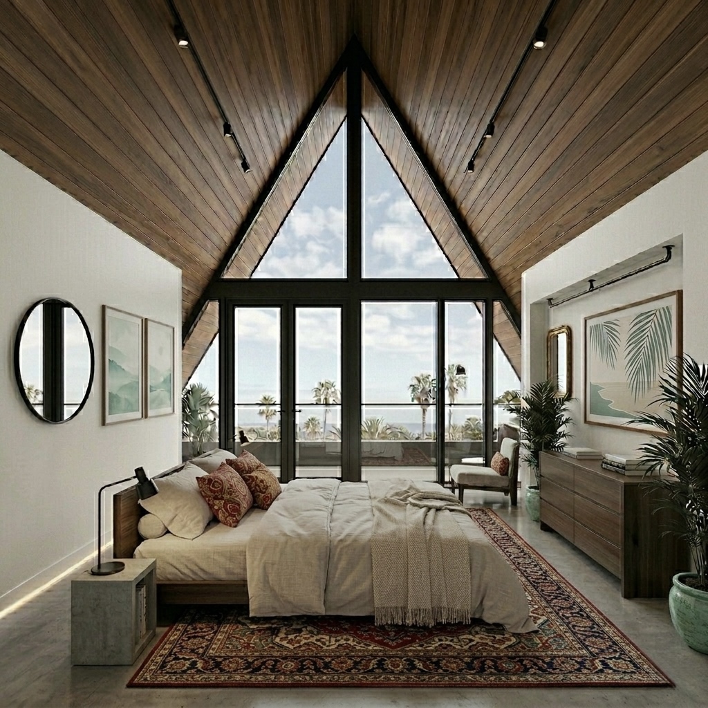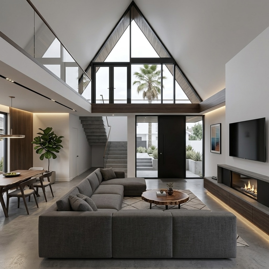 Warmth Meets Geometry: Modern A-Frame Interior Highlights
