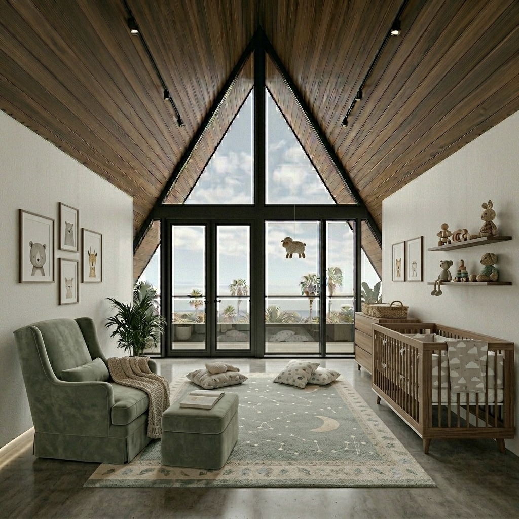 • Minimalist Nurseries: The inherent “nest-like” feel of an A-frame is perfect for a nursery, where natural light and geometric nooks create a bright, calm environment.